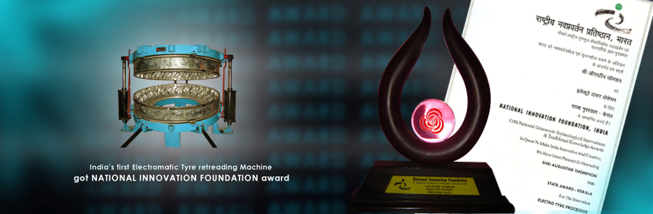 THOMPSON'S ELECTROMATIC TYRE MACHINES (P) LTD. is India's first company to launch the innovative electromatic tyre retreading machines.Our machines have captured a quality statement among reputed tyre retreading firms and its discerning clientele globally . Augustine Thompson, the founder of this innovative product had given top priority for research and development of new technology. As a result, we have been able to deliver products of the highest quality year after year. By constantly being in touch with the progresses in the industry, we have been able to maintain on time delivery and unmatched quality. We have got NIF[ National innovation Foundation ] award for best innovation, Electrical tyre processor.We are dedicated in bringing out word-class products that will meet the demands of future.