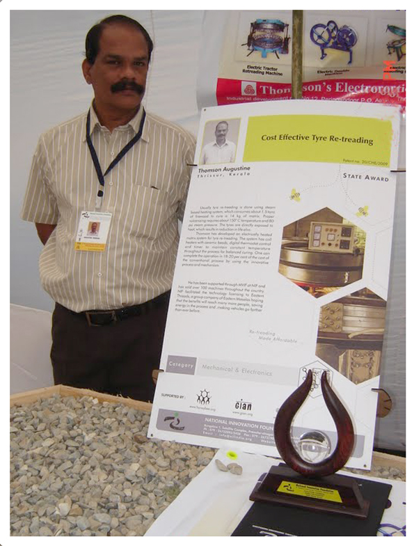 THOMPSON'S ELECTROMATIC TYRE MACHINES (P) LTD. is India's first company to launch the innovative electromatic tyre retreading machines.Our machines have captured a quality statement among reputed tyre retreading firms and its discerning clientele globally . Augustine Thompson, the founder of this innovative product had given top priority for research and development of new technology. As a result, we have been able to deliver products of the highest quality year after year. By constantly being in touch with the progresses in the industry, we have been able to maintain on time delivery and unmatched quality. We have got NIF[ National innovation Foundation ] award for best innovation, Electrical tyre processor.We are dedicated in bringing out word-class products that will meet the demands of future.